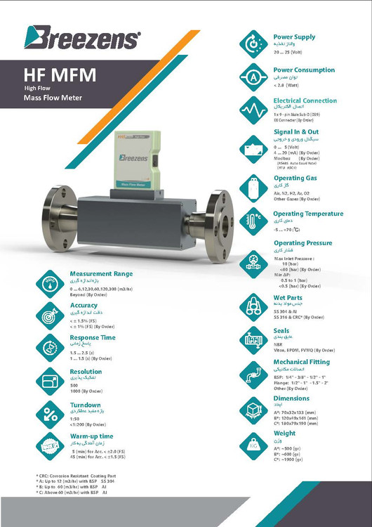 فلومتر گاز بوتان (گاز شهری) 5000 لیتر بر دقیقه جریانی 4-20 میلی آمپر دارای مودباس
